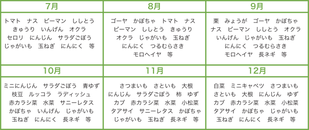 収穫予定の品目 上記より7〜10品目お届けします